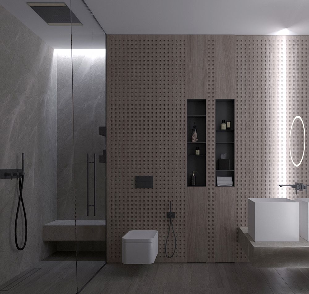 Designed in collaboration with DK Architects Dmitry Kurganov and Marina Kurganova, Cellmembrane wood panels embody a harmonious blend of form and function. Their geometric rhythmic pattern is ascetic yet meaningful, evoking a sense of calm and balance. Each panel transforms your space into a serene retreat, deeply rooted in tradition and devoid of excess.