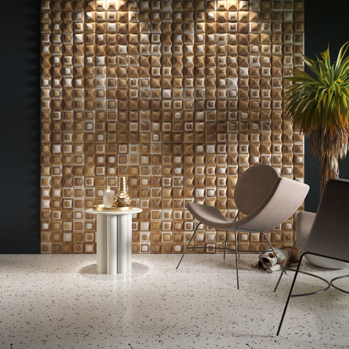 Prism panels transcend conventional boundaries with their intricate shapes and contrasting tones. The 10x10 cm element dimensions contribute to the stunning visual effect, making it a true statement piece for any wall. Whether you seek to add a touch of elegance to a contemporary space or infuse warmth into a classic setting, Prism panels promise to transform your walls into captivating canvases.