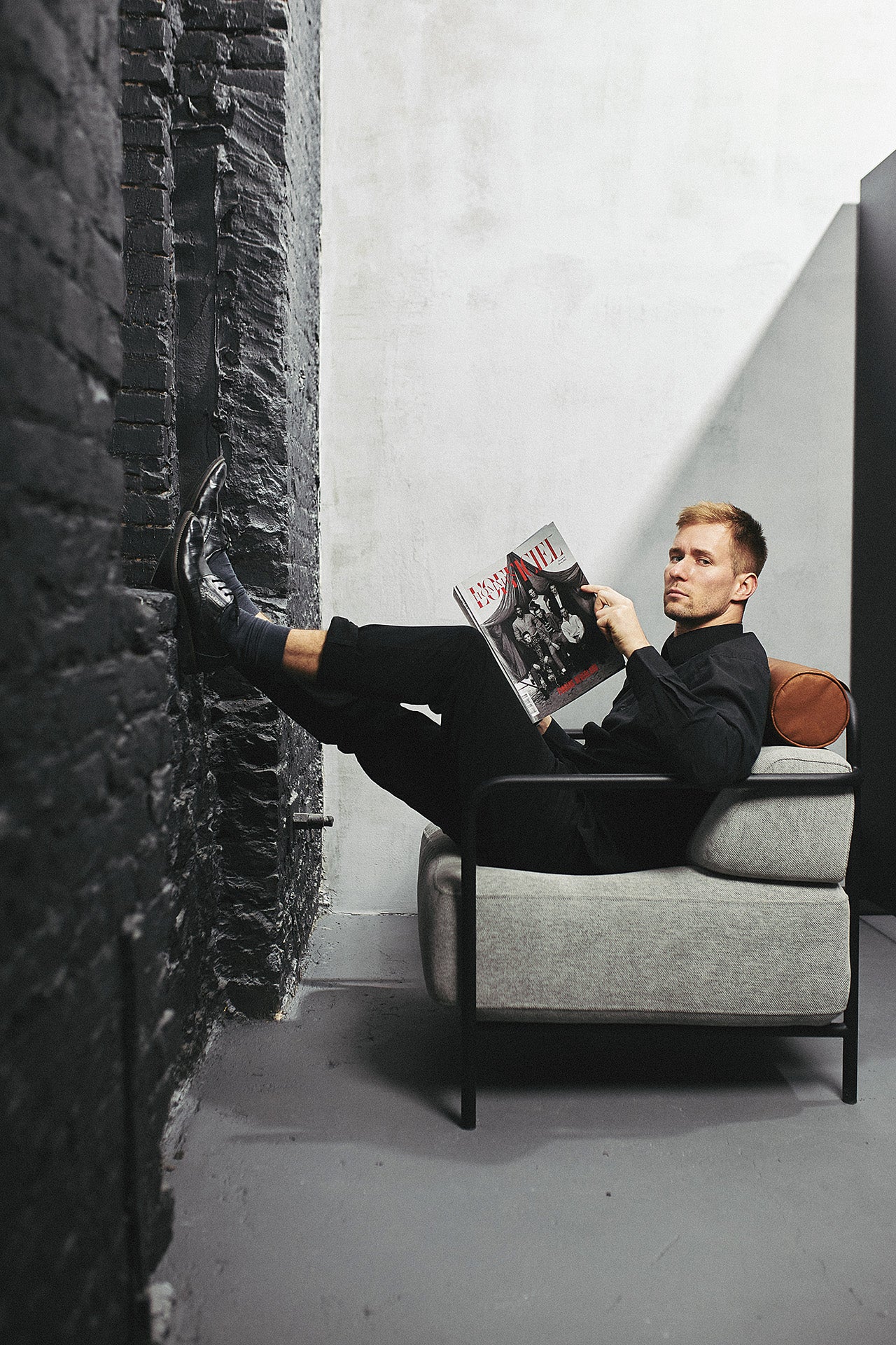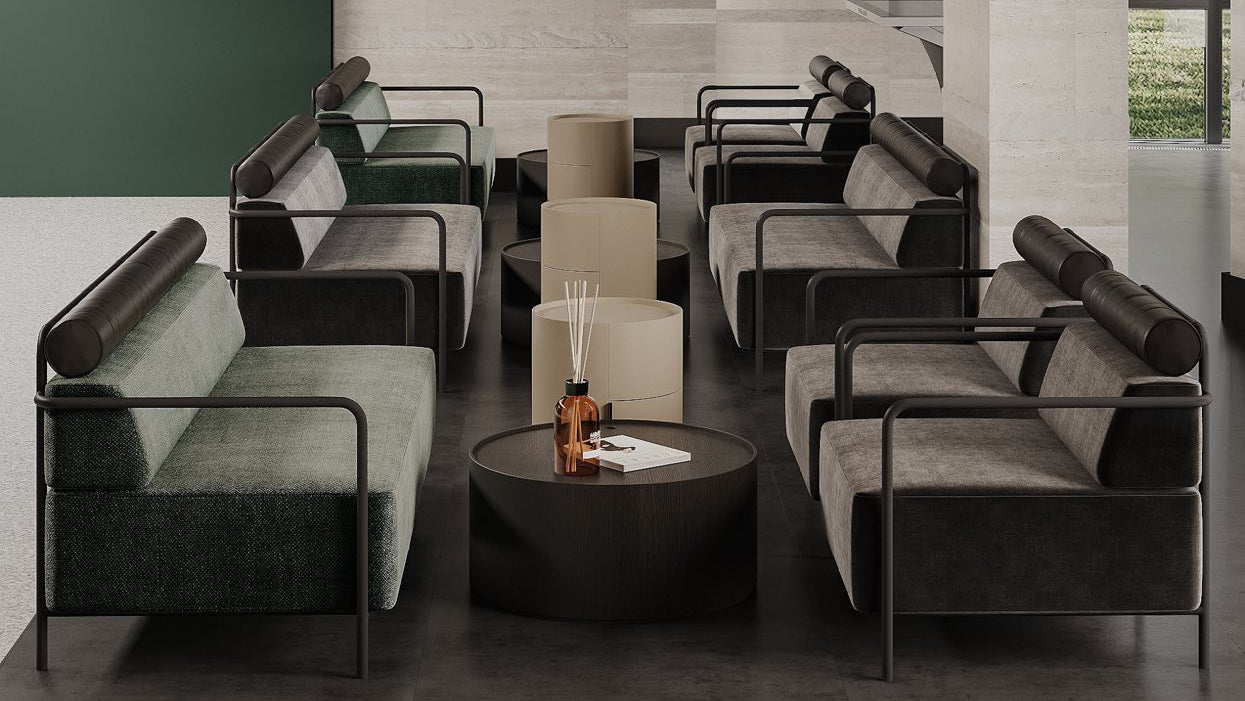 Weekend Lounge Chair is a contemporary lounge seating piece from the Weekend furniture series by Ukrainian designer Dmytro Kozachyshyn for Kint. It is engineered to offer both comfortable seating and architectural presence, combining a minimalist metal frame with a soft upholstered seat and back.