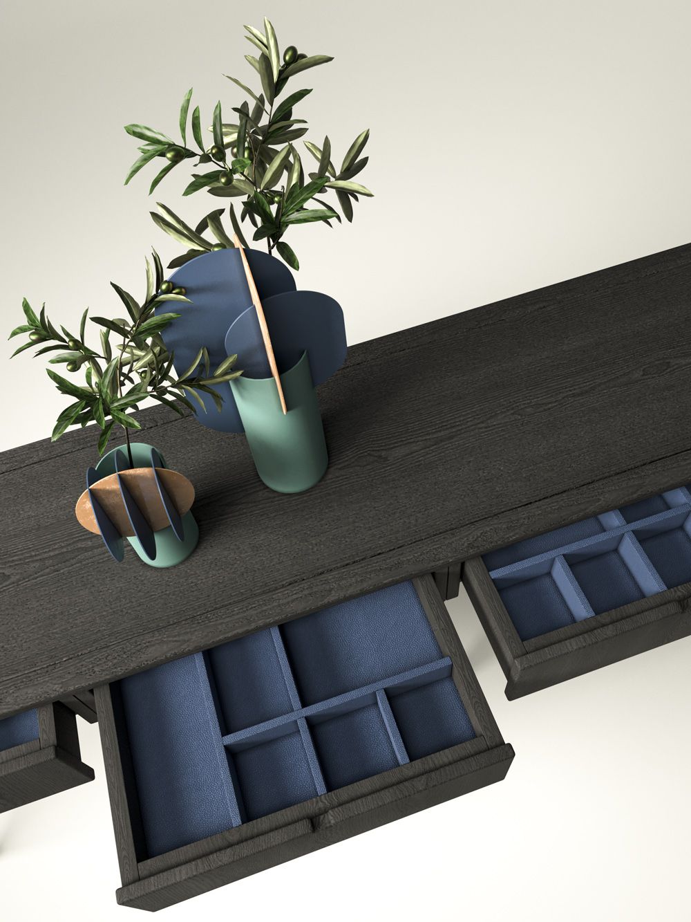Available in two sizes, the Essence Light and the Essence Great, this console adapts to sophisticated spaces and varied needs. Its clean lines and minimalist design speak volumes about your taste. For added customization, the interior of the console can be painted to reflect your mood or adorned with vegan leather, adding a unique touch to your furniture.